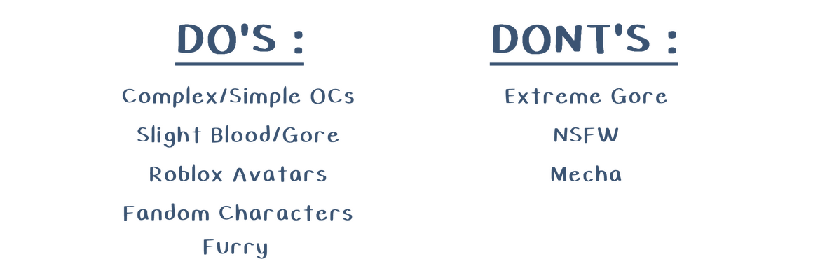 1. Commissions are for personal use only! You can use it as Profiles/Banners, but please do not use them for profit!2. Using my art to train A.I. engines of any sort, or as an asset for any Nun-Fungible Token (NFT) is strictly prohibited. I own all the rights to my work.3. I have every right to decline a commission that I feel may not match my current skill level.4. Please credit me whenever you repost or share the artwork. Avoid claiming it as your own work.5. Commissions don't have an exact deadline. However, expect frequent updates.For questions regarding payment, process, time needed, and Do's and Dont's, please refer to the FAQ!